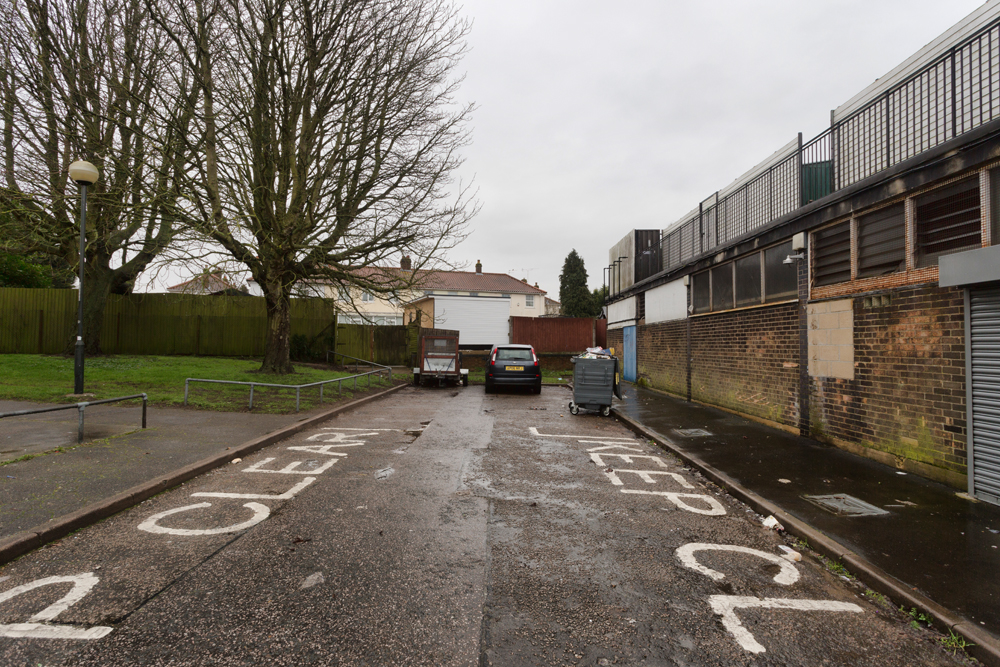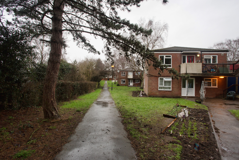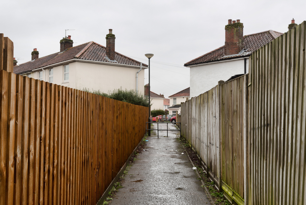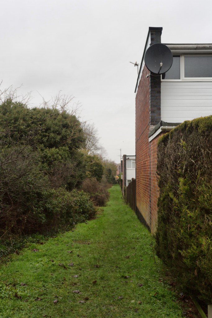 An alleyway leading from Fungi’s farm and back into the estate at Mitre Court.