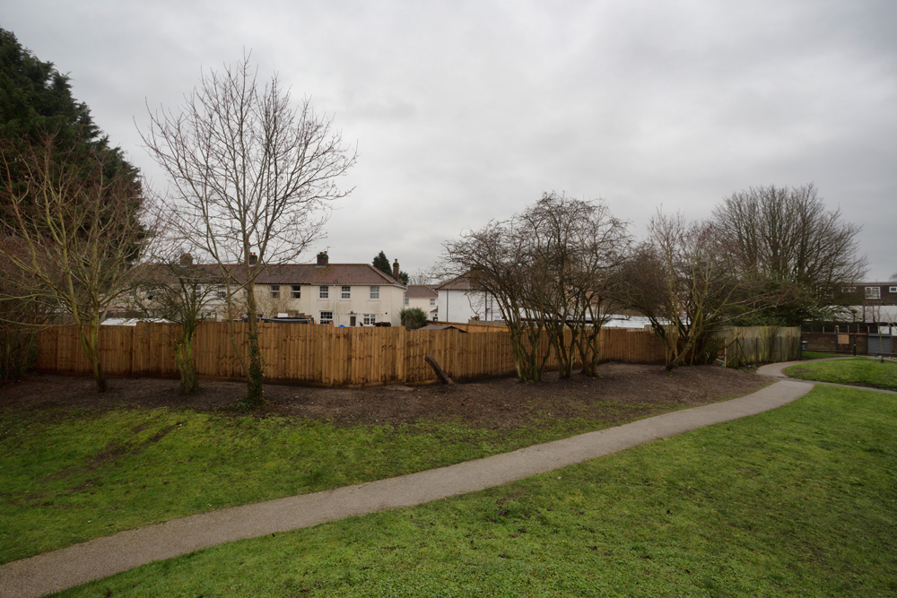 Whilst on the subject of old pathways, there was another path used by many Mile Cross residents that ran up to and along the edge of Fungi’s field. It ran from Galley Hill (the road), between the field that is now the Whiffler industrial estate and behind the houses on the western side of Bowers Avenue all the way through to Boundary Road at Fungi’s Pit. Parts of that path are still there in spirit if you turn left after the last house on the left at the end of the original reaches of Bowers Avenue. People would use this path as a short-cut to save having to walk all the way up Drayton Road and down Boundary road to get to the Whiffler pub, and us 1980’s kids used to use it to get straight to the playpark and avoid walking past the tower blocks where it always felt like you were never to far away from being picked on by some of the older kids. For this particular blog entry I decided to drag my wife and kids out for a lockdown walk so that I could retrace my childhood steps to take the following photographs.