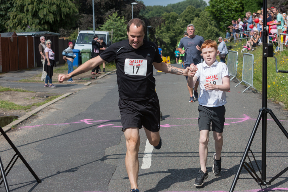 To finish off the Galley Hill Dash event was the ‘Everyone up the Hill race’. The rules were simple, run once up the entire length of Galley Hill and the first person over the line would win. A large crowd had gathered at the bottom of the hill for this race and to my surprise, in amongst that crowd I could see my dad. He had swapped his slippers for his Nike Training shoes. He’s in his late sixties and I can’t remember the last time I ever see him run anywhere, thankfully St John’s Ambulance were in attendance should anybody get a little too puffed out! Seeing as I was there to take photographs I couldn’t really join in myself, however, as I had started taking pictures at the bottom of the hill I inevitably ended up having to run up the path next to the hill (which near the top is considerably steeper than the road), so that I could capture people crossing the line at the end. Unsurprisingly, running up a hill and taking photographs meant that a lot of the shots were a bit blurry. Still, it was all good fun. Looking through those photographs I can see that my dad was not far behind my 16 year old son when crossing the finish line. There’s life in the old dog yet.