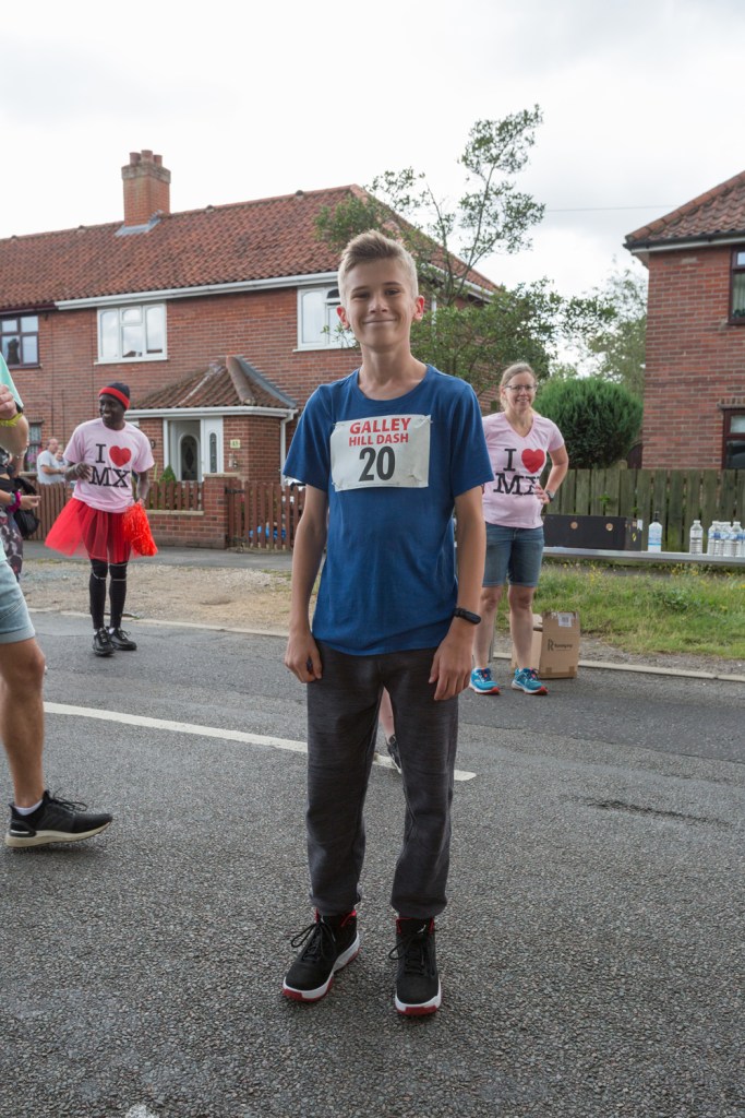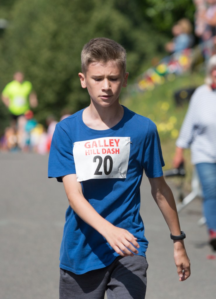 Hold up. what’s this? The winner of the first Galley Hill Dash celebrates his win. What happened to the lad in blue?