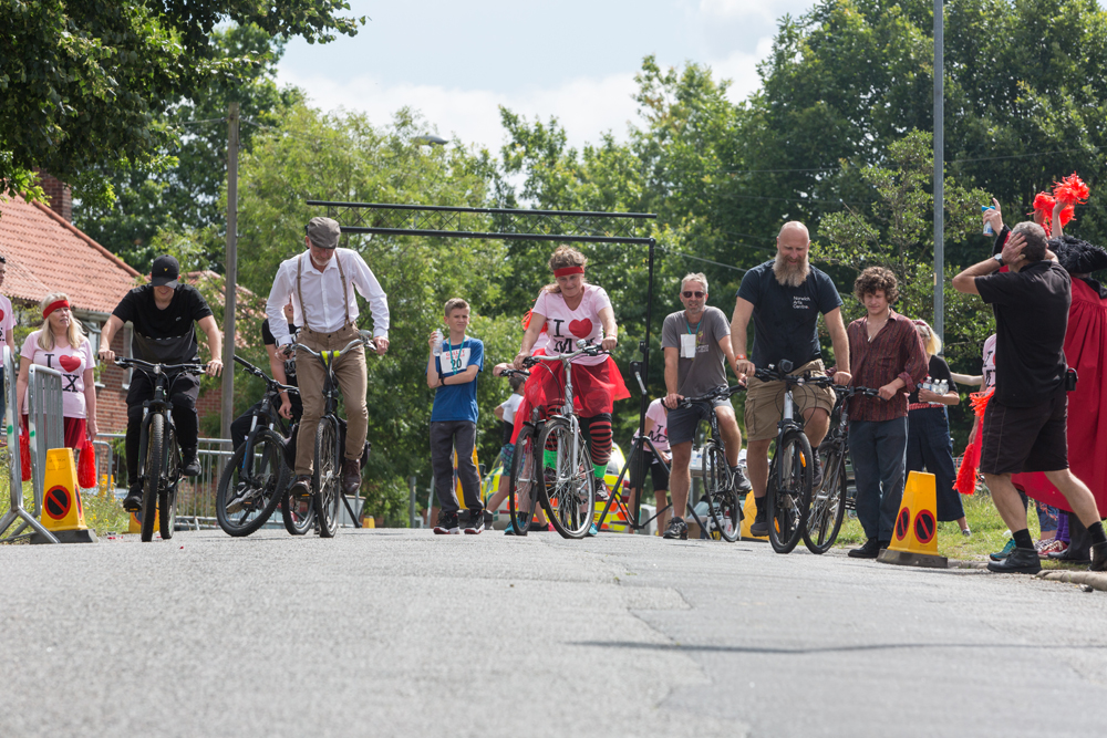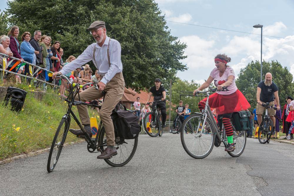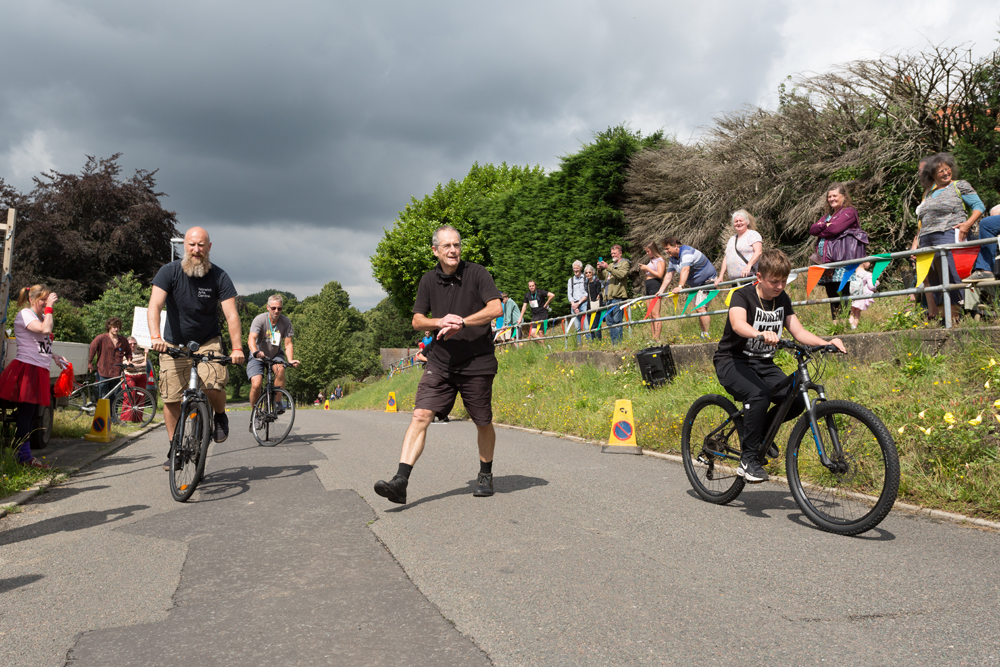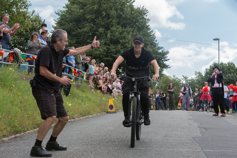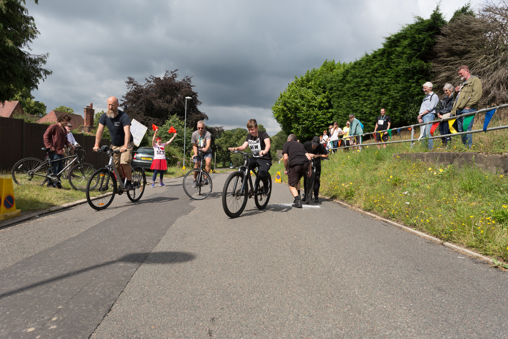 After the main race was the Slow bike racing tournament, where the last person over the line without putting a foot on the ground or holding up a rival was the winner. The heats were down-hill and The final was an uphill challenge and altogether it made for an amusing spectacle.