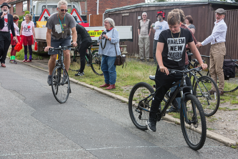 Rather inevitably, this chap is the winner. Cheered as he cycles over the line last. Or first. He’s now won two out three of the events. The crowd boos. They didn’t.