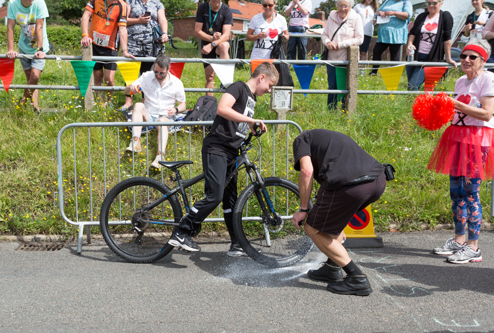The main race was to be four times up the hill and three times down, with the start line at the bottom and the finish line at the top and it should have been won by a young lad who was miles ahead of the rest of the pack. until he stopped after mistakenly thinking he’d won a lap early, which was a shame, but a hard lesson learned. You couldn’t help but feel for him though.