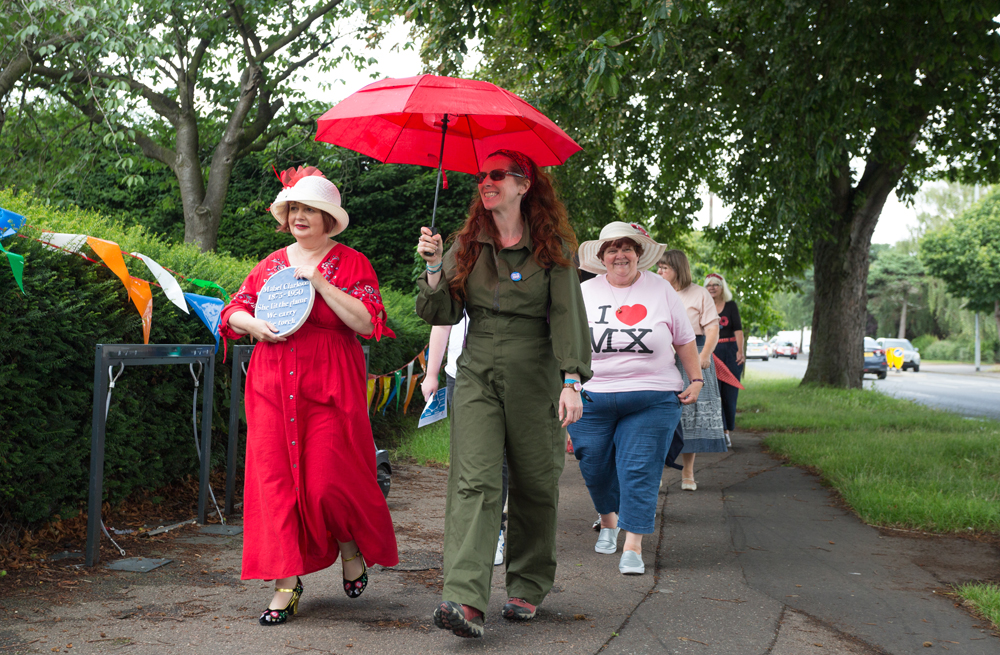 Next stop, Mile Cross Library for the unveiling of another of Rosie’s Plaques, this time for the wonderful Mayor of Norwich, Mabel Clarkson. Councillor for Mile Cross, Chrissie Rumsby carries the plaque to the Library opened by Mabel almost a century prior.