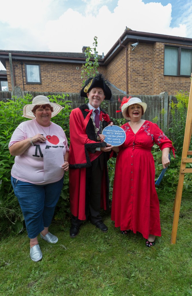 The plaque to Mabel Clarkson being displayed by Councillor Rumsby and the Mayor.
