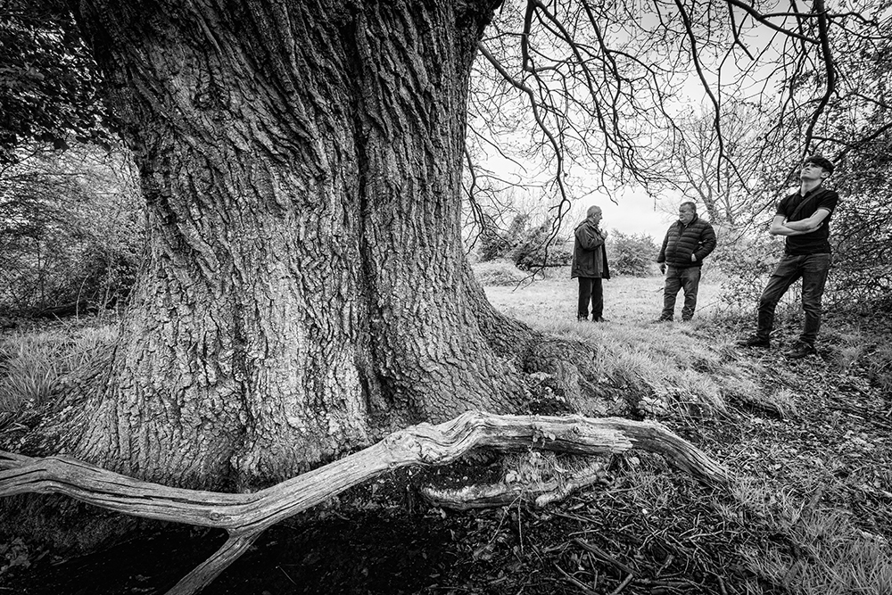 Menscraft photo walkers, chatting under what is possibly the oldest Tree here in Mile Cross. Author.