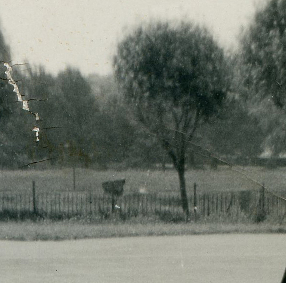 As lovely as the image is, I was immediately drawn to what I could see in the background, and the crops below give up a little more detail. The first of which showing the back wall of one of the toilet blocks, which were demolished well before I attended the school in the 1980’s, and and what looks like a gravestone is actually one of a pair of drinking fountains. Apparently the boys used to like leaving a frog in the one used by the girls, which is a lot nicer than what some of the boys used to do in the newer drinking fountains that were in the playground when I was a kid! Also of interest is a small building in the middle distance that stands not too far from where the modern-day BMX track is situated at the back of Sloughbottom Park. This small building was connected to a gravel pit that was still in use at the time and the wall or fence that can be seen in front of it was a lane that ran towards it from the bottom of Parr Road. something until now I’d only ever seen on a map, and something I’d never imagine I’d ever see a photograph of.